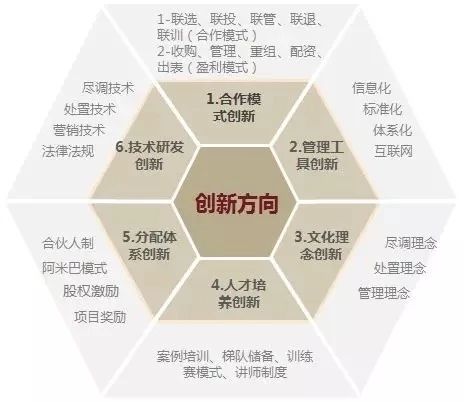 单一的资源优势已经不符合现阶段的不良资产市场,资本驱动下的批发模式和专业驱动下的管退模式都无法真正做大做强,只有通过模式创新,把各方资源有效整合,才能更好地发挥各自优势。同时,结合专业化的团队,通过信息化手段,搭建合作共赢的平台,来实现有效资源整合。特殊资产上中下游产业链开始细分,更专注更专业,特别是后端的市场细分,创新出更多的玩法。
