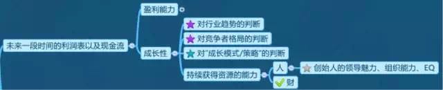 判断成长性是最关键的,需要投资经理对行业发展趋势、竞争者格局要了解。对公司的成长模式/策略进行分析;还要衡量公司其获得资源(人和财)的能力。在流动性过剩的年代,财似乎不怎么用愁,而人就变成了关键。组建自己的创业团队,是一个成功的企业家必须具备的能力,是成长性的保证。创业团队永远永远是投资的载体,核心的团队成员必须在投资前就到位,而且都要下注下去,“没有痛觉就没有感觉”。