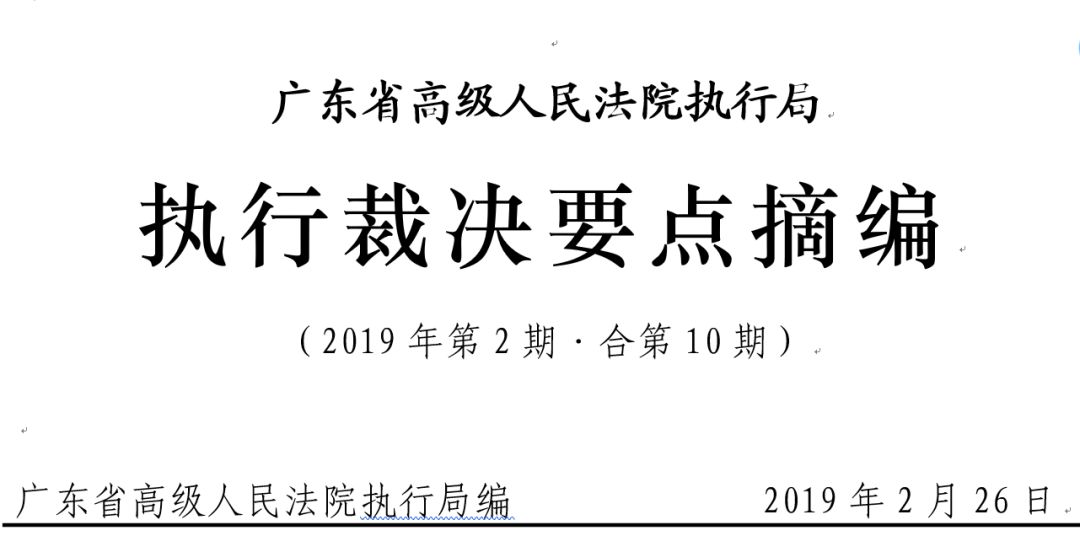 编者按:本裁决要点摘自广东省高级人民法院执行局作出的已发生法律效力的执行裁定文书,供全省法院执行局办理执行案件时参考。