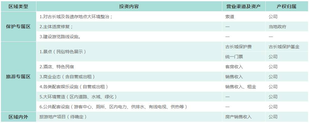 项目一期主要包括水街、1个五星级酒店,1-2会所,部分民宿,司马台长城(包括上长城的索道),还有一些民俗馆等。二期预计以旅游度假公寓住宅为主。因此,当前项目的主要收入来自门票+旅游经营收入。