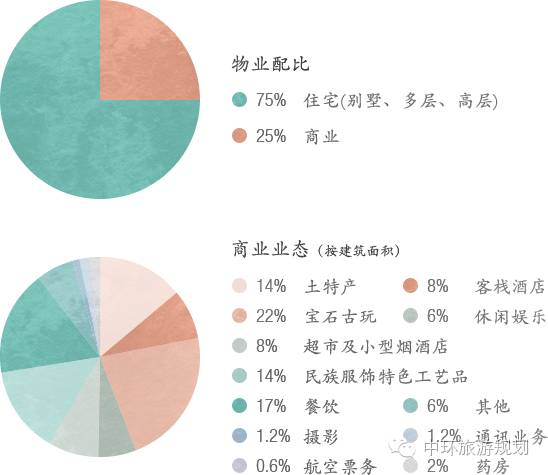 前期是以开发旅游商业为主,辅以别墅、院落等住宅物业。