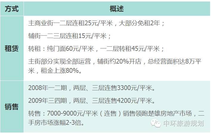 收益:自2006年开街以来,旅游人数和收入直线增长。2008年游客量250万人次,收入1.6亿元;2010年达到710万人次。