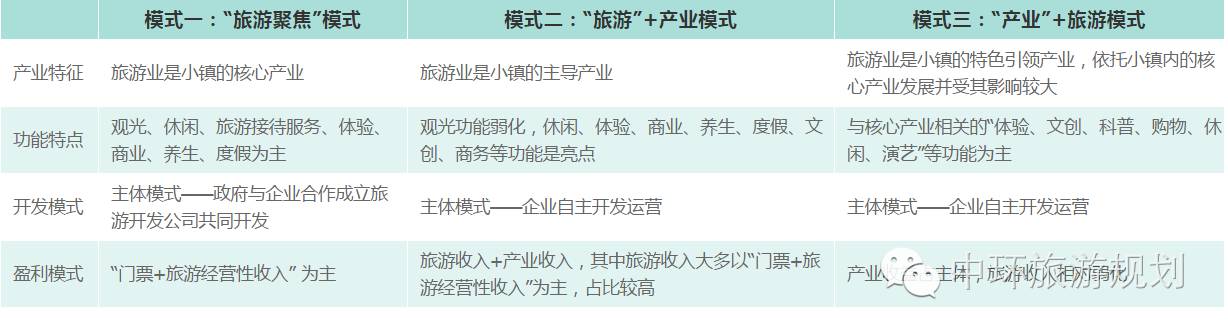 通过对浙江、湖南、贵州等地的旅游小镇进行统计研究,根据旅游产业在旅游小镇中的产业地位,确定旅游小镇发展三大模式:“旅游聚焦”模式、“旅游+”产业模式、“产业+”旅游模式。