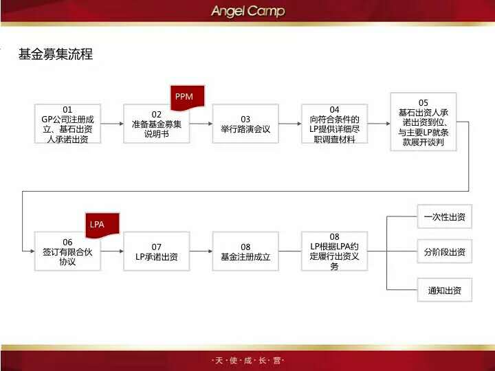 后面就是基石投资人的承诺出资到位,与主要LP条款展开谈判,后面签LPA这种有限合伙协议,LP出资,可能会出一个承诺出资函,基金注册成立,LP打款。