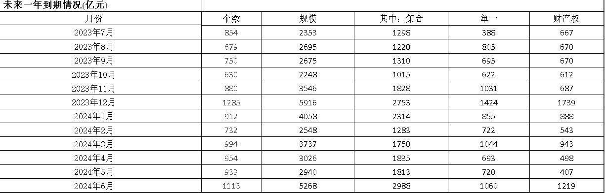2023年9月19日,中国信托业协会发布的数据显示,2023年10月-2024年6月,即将到期的信托规模约为3.33万亿元。