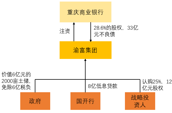 例如,渝富集团灵活调动各方资源,如财政、税收、土储、低息贷款等募集资本,注资重庆商业银行,注资后,不参与参股企业的日常经营,专注资本运作的核心竞争力,仅作为财务投资人获取盈利。