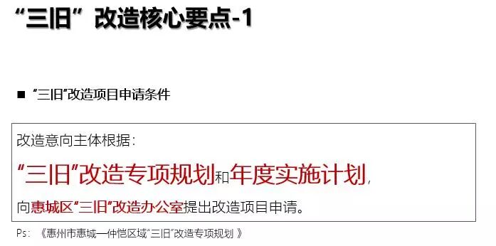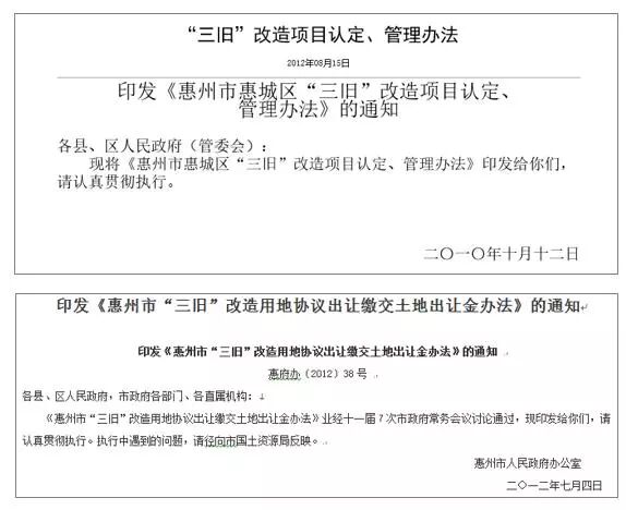 惠州市级“三旧”改造核心政策