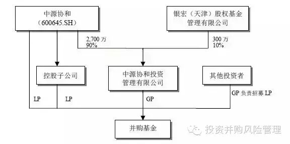 (1)并购基金GP为中源投资,其设立于2014年10月,注册于北京经济技术开发区,组织形式为有限责任公司,注册资本为3000万元,其中中源协和以现金出资2700万元人民币,持股比例为90%;银宏(天津)股权基金管理有限公司以现金出资300万元人民币,持股比例为10%,具体出资结构如下图所示: