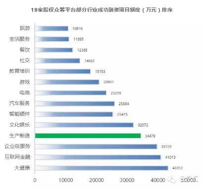图1 19家股权众筹平台行业项目累计成功融资额度排序(数据来源:云投汇投研部报告)