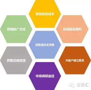第四,达成市场推广和调研。通过互联网平台向进行定向宣传,可以获得潜在的消费者、支持者和投资者,同时,也会通过目标受众获得对自身产品、商业模式的反馈。