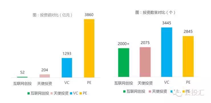 图6 2015年互联网创投投资规模、数量与天使投资、VC、PE对比