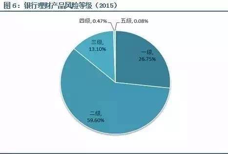 从风险等级角度来看,根据银监会发布的《商业银行理财产品销售管理办法》,商业银行应当对客户风险承受能力进行评估,确定客户风险承受能力评级,由低到高划分为五级。最低风险等级(即一级)的产品,适合所有的投资者购买,几乎等同于无风险产品。根据中债登披露的数据,2015年发行的理财产品中,风险等级为一级与二级的理财产品占比近86%,风险等级为四级与五级的理财产品合计只有0.5%。可见总体来说,目前银行发行的理财产品还是以低风险产品为主,高风险产品占比很低,银行理财产品安全性整体较高(见图6)。
