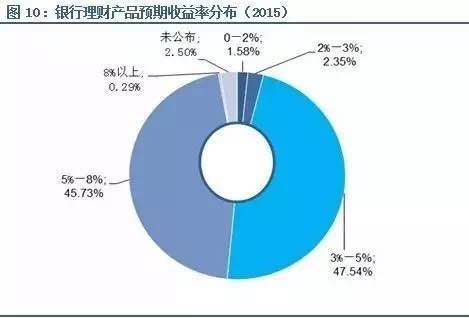 从2015年新发行的银行理财产品预期收益率来看,根据wind数据,九成多的理财产品预期收益率在3%—8%之间,其中预期收益率在3%—5%之间的占比为47.54%,预期收益率在5%—8%之间的产品占比为45.73%(见图10)。目前银行理财产品以6个月内短期限品种为主,考虑到目前我国银行存款利率水平较低,而理财产品的“预期收益率”较高,对银行来说,通过银行理财产品吸纳资金的成本较高,这对银行理财资金的投资水平提出了较高的要求。