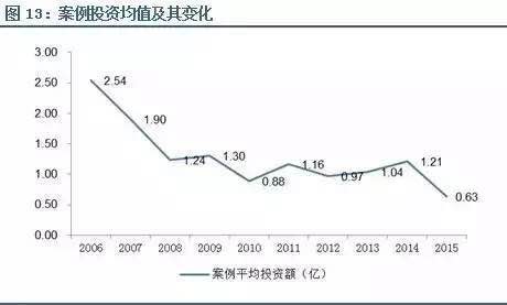 2014年9月,李克强总理首次在夏季达沃斯论坛上发出“大众创业、万众创新”的号召,2015年李克强总理在政府工作报告又提出“大众创业,万众创新”。随后,为响应《国务院关于大力推进大众创业万众创新若干政策措施的意见》的精神,相继出台一系列政策文件,为“双创”创造了良好环境。在此背景下,我国私募股权投资基金积极对接国家政策,注重对成长性中小企业的投资,促进社会资源的优化配置。从数据上来看,2015年我国私募股权投资基金投资案例数达8365只,是2014年的2.3倍,同时,每个案例的投资额呈现下降趋势,由2014年的1.21亿下降至0.63亿元,将有限的资金尽可能支持更多的处于成长期的小微企业。