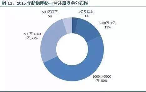 在监管趋严的政策环境下,P2P平台的注册资本金规模明显增大,2015年,新增品P2P平台总注册资金为1000—5000万的占比为50%。