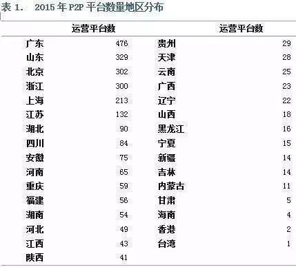 从区域分布来看,P2P平台主要分布在经济金融发达地区,其中广东、山东、北京、浙江、上海和江苏的平台数量占总数的68%。