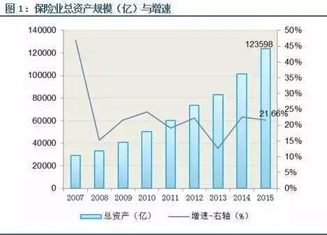 截至2015年底,保险业总资产12.36万亿元,同比增长21.66%,扩张势头不减(图1)。其中保险资金运用余额是11.18万亿,同比增长19.8%。