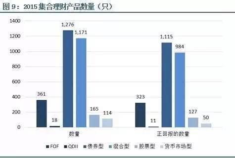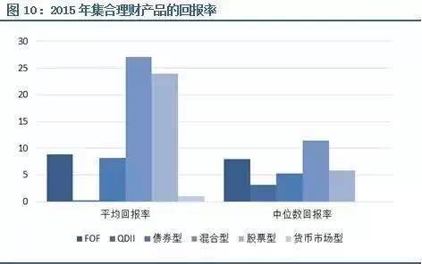 截至2015年12月31日,剔除12月没有公布净值的产品和6月份后成立的产品后,进入统计的券商资管的集合理财产品总共有3179只。 2015年以来回报率为正的有2670只(其中回报率大于等于100%的产品有74只),亏损的有342只。产品平均回报率为16%(回报率前10%的产品平均回报率为96.88%,回报率后10%的产品平均回报率为-11.47%),中位数回报率为6.25%(回报率前10%的产品中位数回报率为67.18%,回报率后10%的产品平均回报率为-6.73%)。