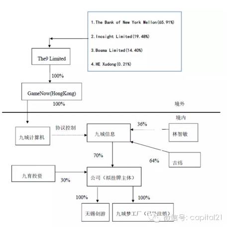 根据九城教育新三板挂牌的《公开转让说明书》的披露,该公司的控股股东上海第九城市信息技术有限公司(“九城信息”)处于VIE协议控制之下,为VIE控制架构中的境内运营实体。公司的实际控制人为VIE架构中的美国纳斯达克上市公司第九城市(The9)。九城教育成为明确披露挂牌公司股东受制于VIE控制安排并完成在新三板挂牌的首家公司。