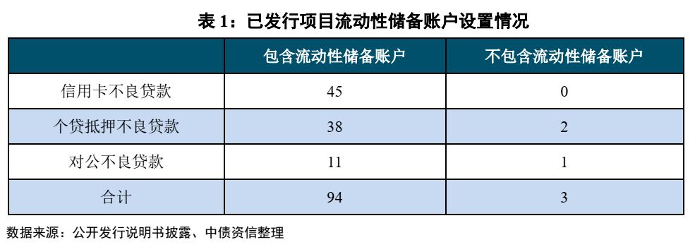 内部流动性支持方案主要指通过设置内部流动性储备账户来保障下一期证券利息的兑付。流动性储备账户的资金来源于资产池现金流,一般将本期的一部分现金流回收款计提至流动性储备账户在下一个支付日进行使用,通常为当期税费、下期证券服务费用以及优先级利息总和的1.5倍,可以起到一定流动性支持的作用,又可以在一定程度上保障投资者的利益。流动性储备账户是一种简易快捷的提供流动性支持的方法,广泛存在于不良资产证券化项目中。