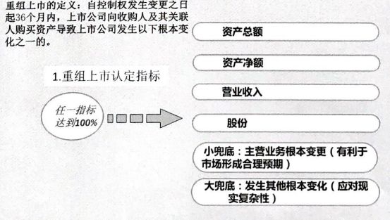针对亏损、微利上市公司“保壳”“养壳”乱象,2016年修订的《重组办法》在重组上市认定标准中设定了总资产、净资产、营业收入、净利润等多项指标。