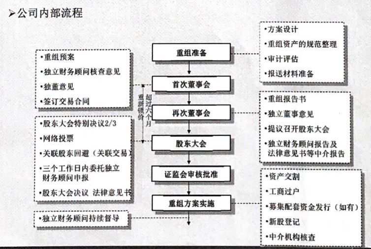 重组:主要涉及公司资产、负债及业务的调整,其目标是优化公司资产规模和质量、产业或行业属性,核心是资产业务准入。