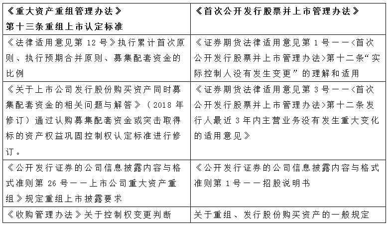 二、重组上市。标的资产需要遵守《首次公开发行股票并上市管理办法》和《 首次公开发行股票并在创业板上市管理办法》规定的发行条件。如果现金购买标的资产构成重组上市的,需要证监会审批;现金类资产交易不构成重组上市,不需报证监会审批。