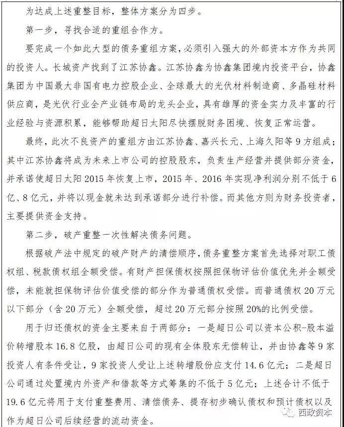 为了更直观地了解重整方案的制定及谈判过程,以下仅以2014年上海超日太阳能科技股份有限公司重整案为例简要介绍重整方案的谈判、制定过程,并节选重整计划的主要内容以加深读者对本部分的理解。