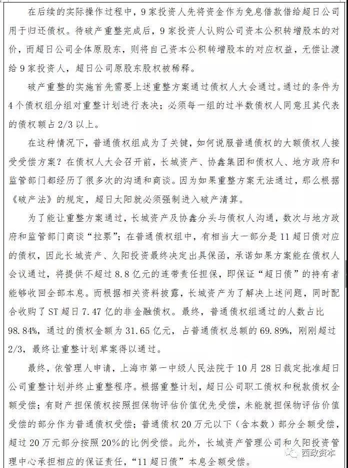 (3)重整方案应注重重整方、债务人、债权人、资金方多方利益的有效平衡及让渡,同时尽量寻找一致行动方以保证方案的通过。