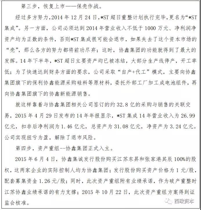 在本案例中,长城资产通过对债务企业及其所处行业的研究,为超日公司寻找到了理想的投资人,能够帮助超日公司尽快摆脱财务困境、恢复正常运营。而能够找到一个理想的投资人,离不开长城资产多次的斡旋和谈判。作为财务投资人进入到债务企业的重整程序中,必然需要与牵头人就相关重整方案达成初步一致,因此在此过程中,作为财务投资人应对债务企业充分了解,并对行业内整合有充分的预判。