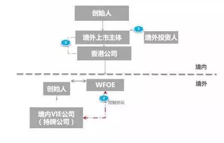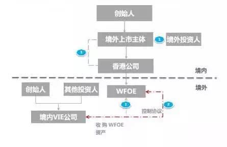 3、重组时,创始人在境外设立壳公司,返程并购其在国内的资产,或者新设一家WFOE,以WFOE在投资的方式并购其境内资产。