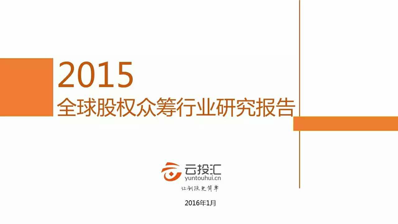 《2015年全球股权众筹行业研究报告》由云投汇独家发布,从全球股权众筹行业政策发展、股权众筹行业商业模式、国内外股权众筹平台发展状况与展望等几个角度展开,力图展现2015年全球股权众筹的发展态势,并预判2016年股权众筹行业的发展趋势。