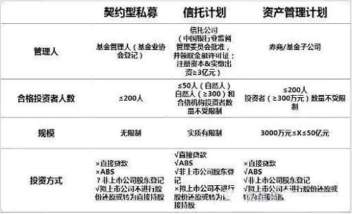 单只契约型基金的投资者人数累计不得超过二百人,投资门槛 100万元(《证券投资基金法》);而通过通道发行的私募基金只有 50 个小额(100 万-300 万元);有限合伙企业和有限责任公司则不能超过五十人(《合伙企业法》、《公司法》)。因此,契约型基金的募集范围比其他两种形式的基金募集范围更广。