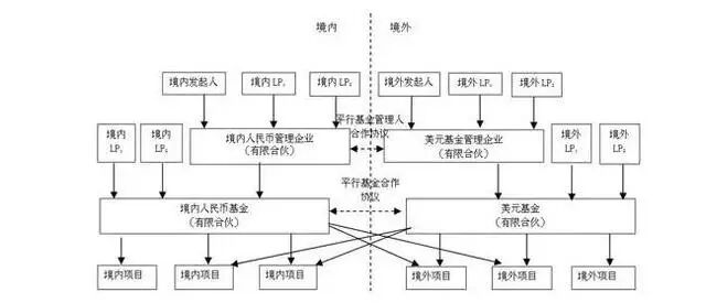 平行基金通常是指由同一或关联的私募基金管理人在同一时期募集设立并以相似的投资策略进行投资运作的多支私募基金。如若是不同的管理团队管理或是采用毫无关联的投资策略进行投资的两支私募基金,一般不会将他们认定为是平行基金。但平行基金的发展并未局限于其语义的含义中,私募基金的管理团队、财务团队及法务团队在私募基金募集、设立、投资和运营过程中为其拓展了更宽的展现平台。譬如,尽管Parallel也有“同时”的意思,但多支平行基金并非均需完全同时募集设立、投资、项目退出和存续,他们设立可能有早晚,项目投资时也不一定同时进行,项目退出也不一定同步,未来清算解散也可能有先后。平行基金架构在境内外私募基金运作中均已有较为广泛的运用,来设立双币平行基金——境内外同时设立两支私募基金,委托同一管理人进行投资管理,寻找项目时两支基金同时进行投资,一般是各占投资额的50%。这两只基金在规模上相当、存续时间也也大致一样,但在法律上,这两只基金是相互独立的,并不隶属于对方。双币平行基金模式是外资PE间接落地,在中国开展私募股权投资业务的一种新型合作模式,即在海外和国内分别募集两个规模相差不多的投资基金,分属外资PE和中国本土PE,通过有共同利益的管理公司把两个基金模拟成一个基金进行分配和清算。寻找目标时,两只基金同时进行投资,一般是各占投资额的50%。在双币平行基金模式下,国外PE在中国境外建立一家创业投资基金,国内创业投资机构在国内建立一家创业投资基金或公司。原则上,这两家基金平行存在,在法律上各自独立。但这两家基金在相互磋商,确立合作意向的基础上,共同在国内建立一家创业投资管理公司,并委托这家公司同时管理国内外两支基金。这种模式的操作过程为:创业投资管理公司作为一个机构,行使基金管理人的职能,负责寻找项目,审核项目,尽职审查。一旦投资项目确定,即向境外基金和国内基金同时推荐项目,申请所需投资的款额。投资后,管理公司直接参与所投项目公司的运作及管理,帮助其成长。必要时,管理公司也积极帮助所投公司进行再融资。待企业成功后,可以采取境外上市或国内上市,境外基金和国内基金(公司)可以通过股权协议转让的方式顺利完成退出。平行基金具有减少结汇限制、便利资金调配、转换投资主体和策略配置资源的功能,能够在一定程度上规避资金流动限制,延缓资金投入,分享互惠交易和灵活安排退出方式等优势。1、平行基金投资模式和退出方式