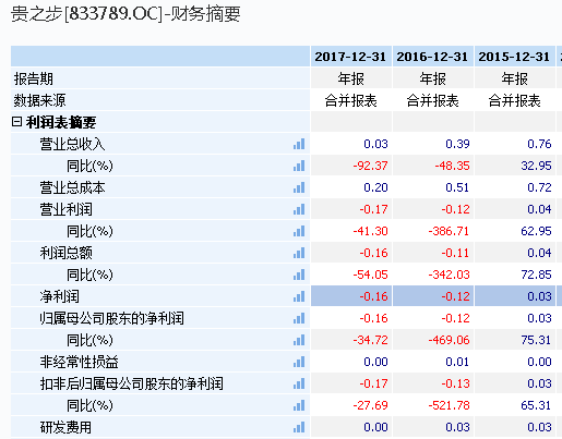 然而业绩却不见好转。2016年,贵之步亏损1215.79万元。2017年,贵之步财务状况依旧不见好,亏损1637.92万元,而公司截至期末净资产仅为436.39万元,累计未弥补亏损2813.12万元。