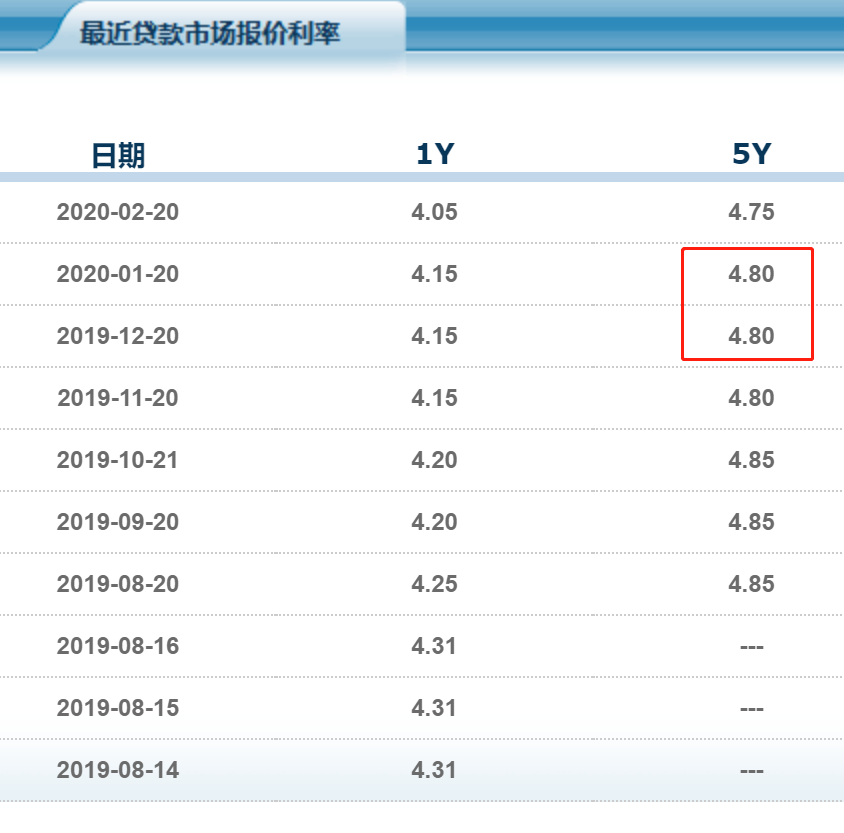 大家从上面的图片可以看到,今年2月份央行5年期贷款市场报价利率下调5BP至4.75%,假设这一基准利率水平直到今年12月仍维持在4.75%,那么你2021年的房贷利率就是:4.75%+0.59%=5.34%
