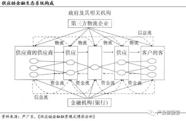 供应链金融通过对供应链的某个环节或全链条提供定制化的金融服务,帮助中小企业解决融资难的问题;同时帮助银行实现差异化竞争、开拓中小企业市场,并利用高附加值的服务绑定核心企业和客户集群;帮助核心企业提升整个产业链的效率,核心企业也可以作为资金提供方,为供应链成员尤其是中小企业提供资金,满足了核心企业产业转型升级的需要,通过金融服务变现其长期积累的行业专业和资源。