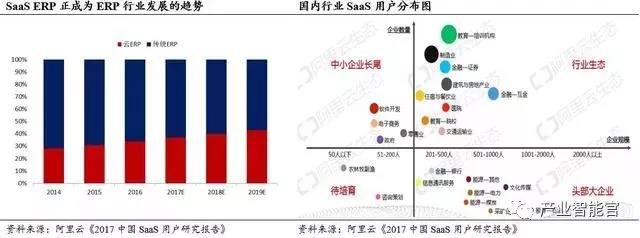 根据Allied Market Research的数据显示,全球云ERP占ERP市场的比重正快速提升,预计至2019年云ERP系统市场规模占比将达到全球ERP市场的43%,ERP“云端化”已成为行业的趋势。而根据IDC统计,2015年云ERP的市场规模已占到SaaS市场规模的27.09%。