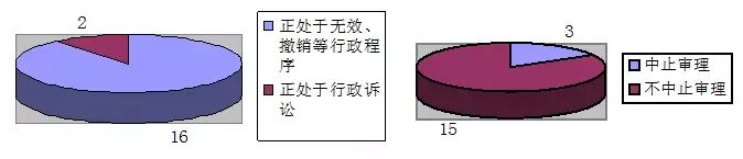③ 法院裁定中止审理的案件占比很小,因检索手段有限,其中大部分未能查找到中止裁定,因此无从得知法院裁定中止的理由。这方面欢迎有所了解的朋友补充和指正。