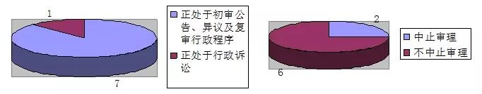 正如前文介绍,第二类情况占比较少,原因主要在于这种申请中止的理由首先需要被告的一个有效申请的存在,而商标申请受理的时间又较长,这对于应诉方在时间上是有要求的,所以并非常规的应诉策略。