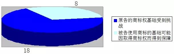 上述占比80%左右的案件,被告对原告商标提出无效、撤销等行政程序的时间大部分在侵权诉讼提起之后。笔者从搜集案例的统计分析,被告或其关联公司提出这些申请主要基于两个目的:(1)运用民事诉讼法中关于中止审理的规定,拖延案件审理的期限,为答辩、举证及后续和解谈判赢得时间。(2)原告商标确有效力瑕疵,如超过三年未使用,或抢注被告在先使用的未注册商标等,被告希望撤销原告商标,使其起诉失去根基。而以前者为主要目的的占比较大。